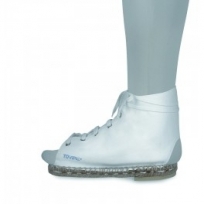 Alpargata ortopédica de suela prolongada que permite la deambulación fisiológica,es decir,con total apoyo de la planta del pie en los vendajes de la extremidad inferior.