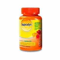 Supradyn® Activo Gummies Adultos es una nueva y deliciosa forma de tomar vitaminas, que como complemento a tu dieta habitual, te ayudará a realizar todas las actividades de tu vida diaria con energía y vitalidad porque contiene Vitaminas A, C y D que contribuyen al funcionamiento normal del sistema inmunitario. Las vitaminas C y E contribuyen a la protección de las células frente al daño oxidativo. La vitamina D contribuye a la absorción y utilización normal del calcio y el fosforo. Las vitaminas del grupo B contribuyen al metabolismo energético normal.