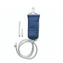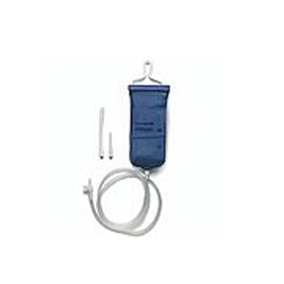 Sistema de lavado intestinal mediante irrigador. La bolsa de plástico o el contenedor rígido tienen una capacidad de 2 litros, con escala, cánula anal para enemas y cánula vaginal de riego.