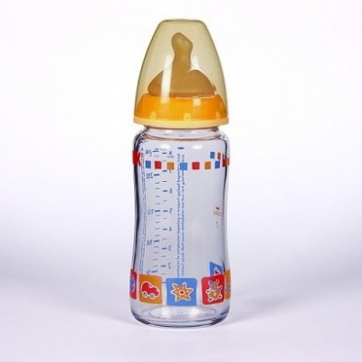 Máxima comodidad y protección bucal de tu bebé con NUK Biberón Látex Boca Ancha Cristal de 240 ml.