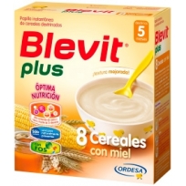 Blevit plus 8 Cereales con miel es una papilla elaborada a base de una equilibrada mezcla de 8 cereales y miel, que proporciona un agradable aroma y sabor a la papilla, mejorando su aceptación por parte del bebé y aumentando su valor nutricional