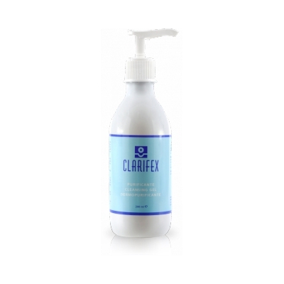 Clarifex es un gel purificante y limpiador indicado para la higiene de pieles grasas de forma diaria. Su poder protector y antiséptico se halla en la combinación de tres sustancias: digluconato de clorhexidina, alcohol diclorobencilico y fenoxietanol.