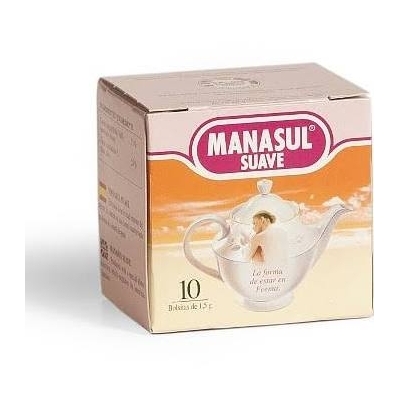 Todos los beneficios de Manasul, pero un poco más suave. MANASUL SUAVE es un producto 100% natural. Está hecho sólo de plantas. Es común su uso como coadyuvante en dietas de control de peso. Una formulación exclusiva que cuida naturalmente el buen funcionamiento del organismo.