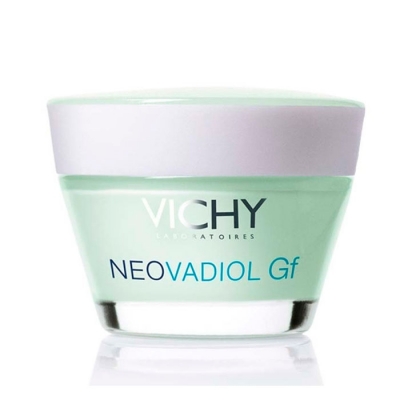 Neovadiol Gf Pieles Normales/Mixtas de Vichy es un tratamiento densificador de noche que estimula los factores de crecimiento naturales de la piel, potentes reconstructores tisulares, consiguiendo construir con mayor rapidez unos tejidos más densos y más estructurados. Para personas con pérdida de densidad cutánea y de las proporciones del rostro, acentuadas por la ralentización hormonal.
