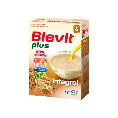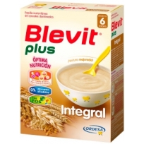 Blevit plus Integral contiene en su composición un alto porcentaje de trigo y arroz integrales y avena, y fructooligosacáridos(FOS), por lo que aporta una gran cantidad de fibra alimentaria (8,4%). Por su elevado contenidoen fibra soluble e insoluble, ayuda a normalizar el tránsito intestinal de una forma natural. Por esta razón, puede utilizarse en la alimentación de los bebés con tendencia al estreñimiento crónico