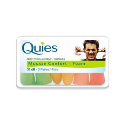 Quies Tapones De Oido Goma o Espuma 6 Unidades Tapones de espuma de colores muy llamativos. Son ideales para evitar ruidos fuertes. Poseen textura extra suave Son de Espuma confort. Con valor de atenuación del ruido de 35 dB. Forma anatómica adaptada al conducto auditivo. Textura lisa y suave (poliuretano). 3 colores vivos surtidos. Ideales en cualquier circunstancia.