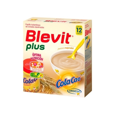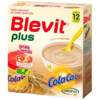 Blevit plus ColaCao®, es una papilla elaborada a partir de la mezcla equilibrada de 5 cereales (trigo, arroz, avena, cebada y centeno) y Cola Cao®, que ayuda a incrementar el valor nutricional y energético de la papilla proporcionando un agradable sabor. Resulta un alimento especialmente indicado para el desayuno o merienda del bebé a partir de los 12 meses de edad.