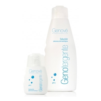 Genotergente Jabón Dermatológico, con ph 5, protege y suaviza la piel y el cuero cabelludo, incluso las pieles hipersensibes en las que está contraindicado el jabón corriente. Especialmente indicado en la higiene del bebé, higiene familiar, higiene íntima femenina, higiene laboral y deportiva.