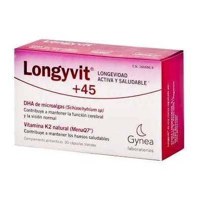 Longyvit es un complemento alimenticio con una fórmula diseñada exclusivamente para la mujer a base de vitaminas femeninas (entre ellas destaca la vitamina K2 natural), omega 3 (DHA de microalgas) y minerales que cubren los requerimientos en micronutrientes a partir de los 40 años