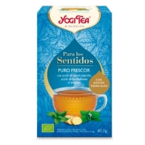 YOGI TEAPuro Frescor inspira los sentidos con sus aceites esenciales de menta piperita y hierbabuena. Combinado con jengibre picante y hierba limón, traerá una sensación de frescor increible dejando cosquilleos de placer en el paladar.